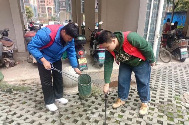 活动中,青年志愿者分工明确,拿着扫帚和工具夹互相配合,充分发扬了“不怕苦、不怕脏、不怕累”的奉献精神,集中开展“搬家式”环境卫生整治工作,对小区内扎堆乱放、乱贴乱放及卫生死角进行集中清理。