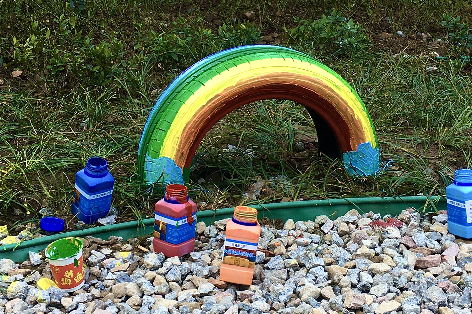 活动中同学们利用公园里的轮胎当画布,用色彩明丽的彩漆绘制充满童趣的涂鸦,几个小时的时间,同学们打造出了一个个独一无二的艺术品,让原本毫不起眼的轮胎,披上了靓丽的“新衣”,极大的美化了环境增加了趣味。