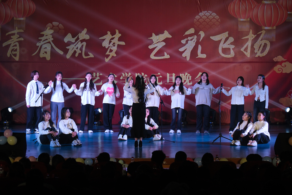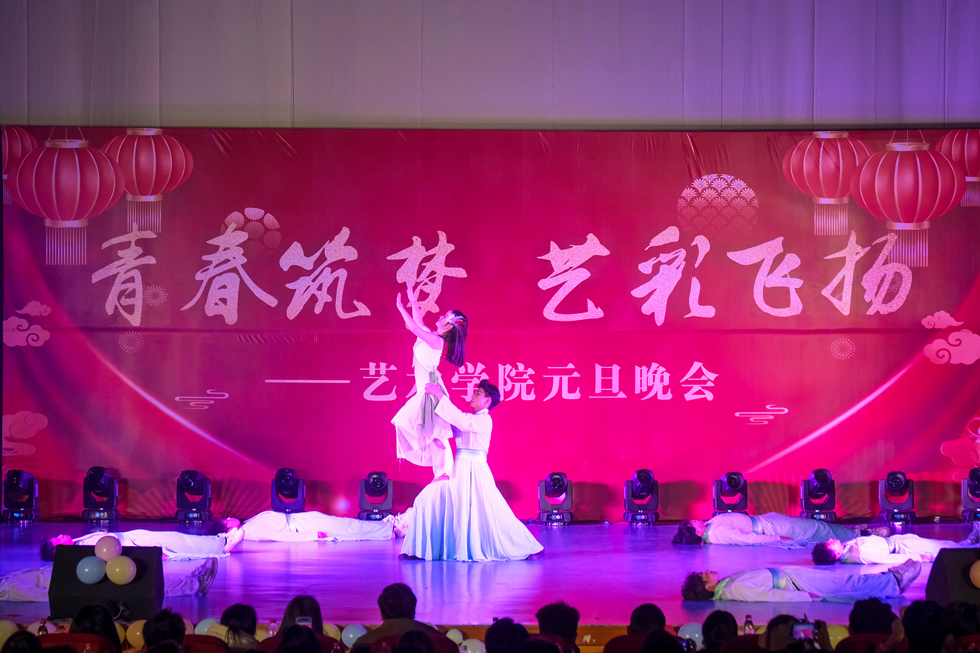 整场演出舞姿优美、歌声嘹亮,舞台下掌声、喝彩声此起彼伏,展示了艺术学院师生多才多艺、团结协作的精神风貌。全院师生在欢声笑语中迎接新的一年,共同期待更加美好的未来。