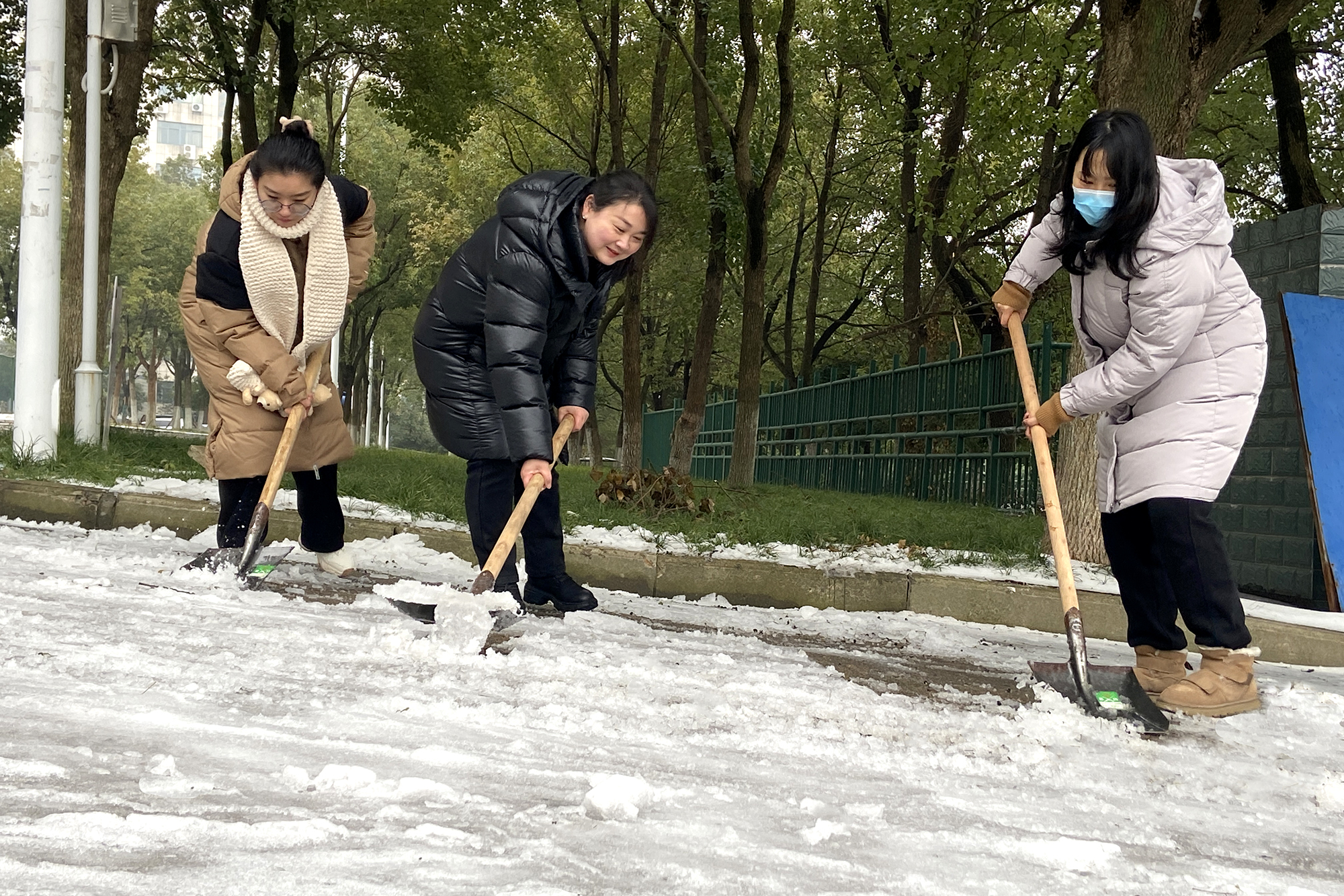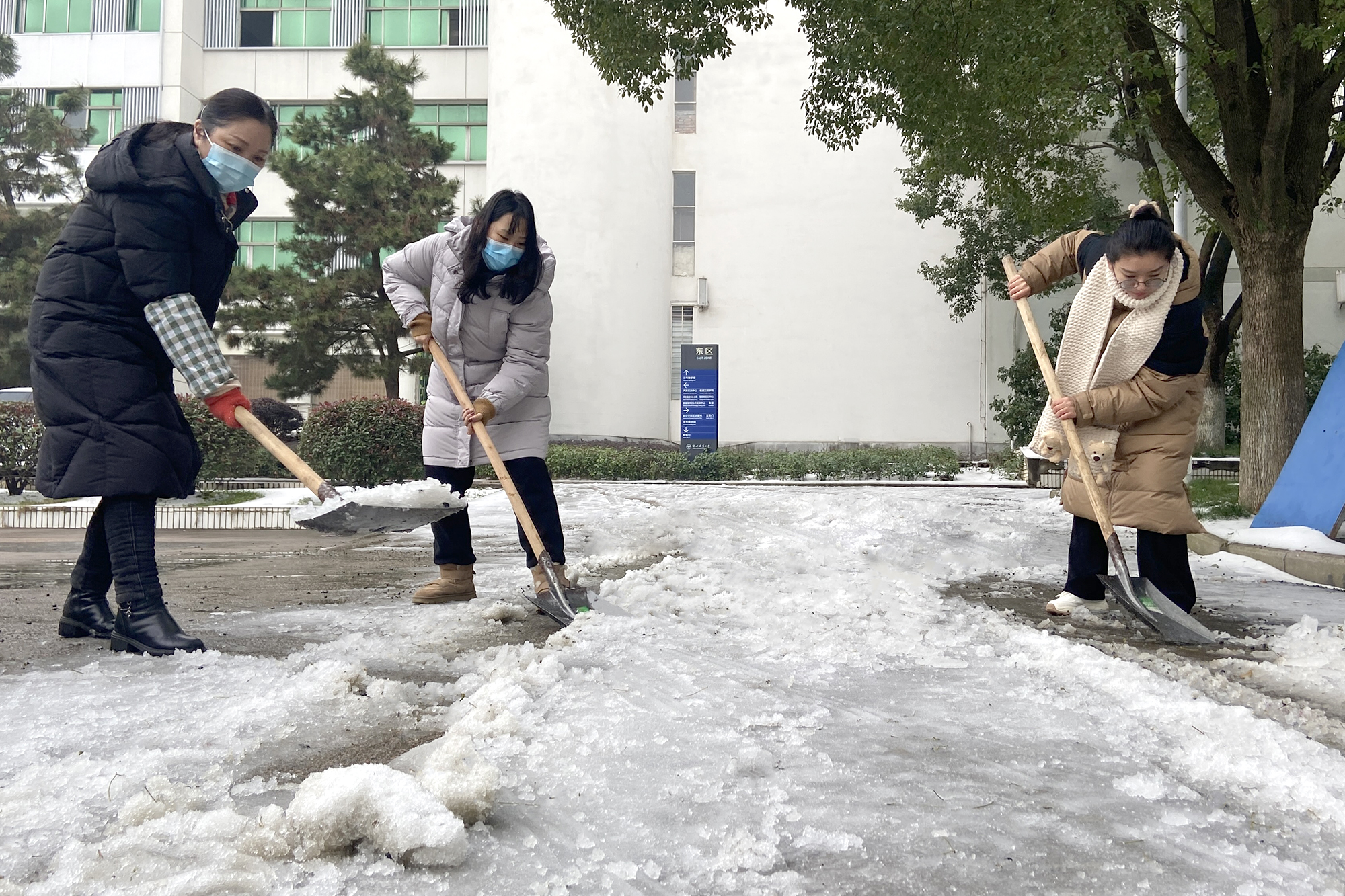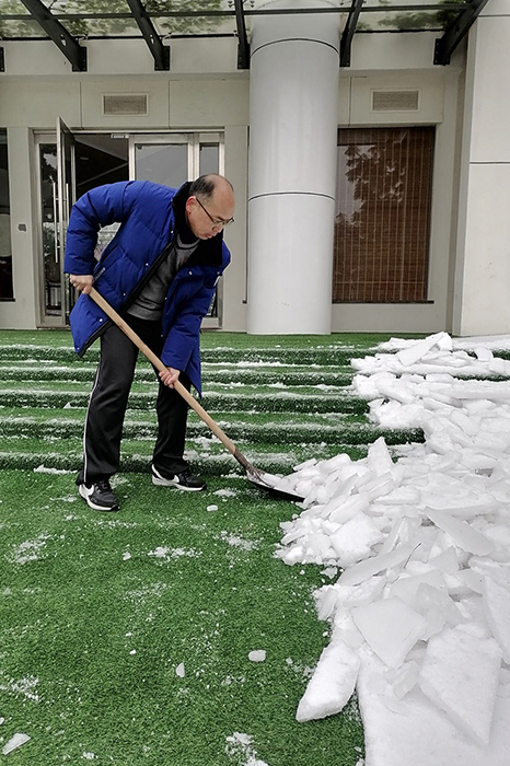 本网讯(通讯员熊小艳)2月26日,艺术学院组织在校教师对包保路段进行除积雪、铲冰层、排积水等工作。活动中老师们相互配合,经过三个多小时的不懈努力,学院包保路面基本清理干净,最大限度减少路面积雪给车辆、行人带来的安全隐患。为即将返校的师生提供了安全保障。