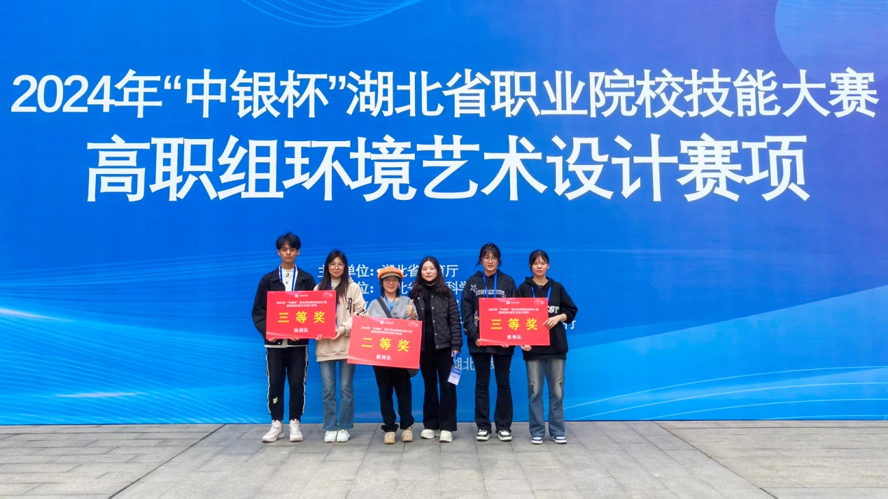 本网讯(记者何建华通讯员许雪琪)3月23日,2024年“中银杯”湖北省职业院校技能大赛(高职组)环境艺术设计赛项在长江职业学院落幕。来自全省各地28所高职院校的110名学生、49名教师参赛。经过激烈角逐,我校艺术学院2022级环境艺术设计01班学生邓子微、唐子淇荣获推荐队三等奖,王呈喆、黄雪云获得抽测队三等奖;许雪琪荣获教师组二等奖。