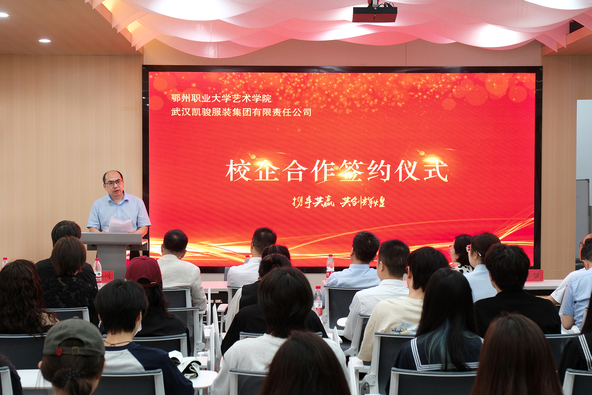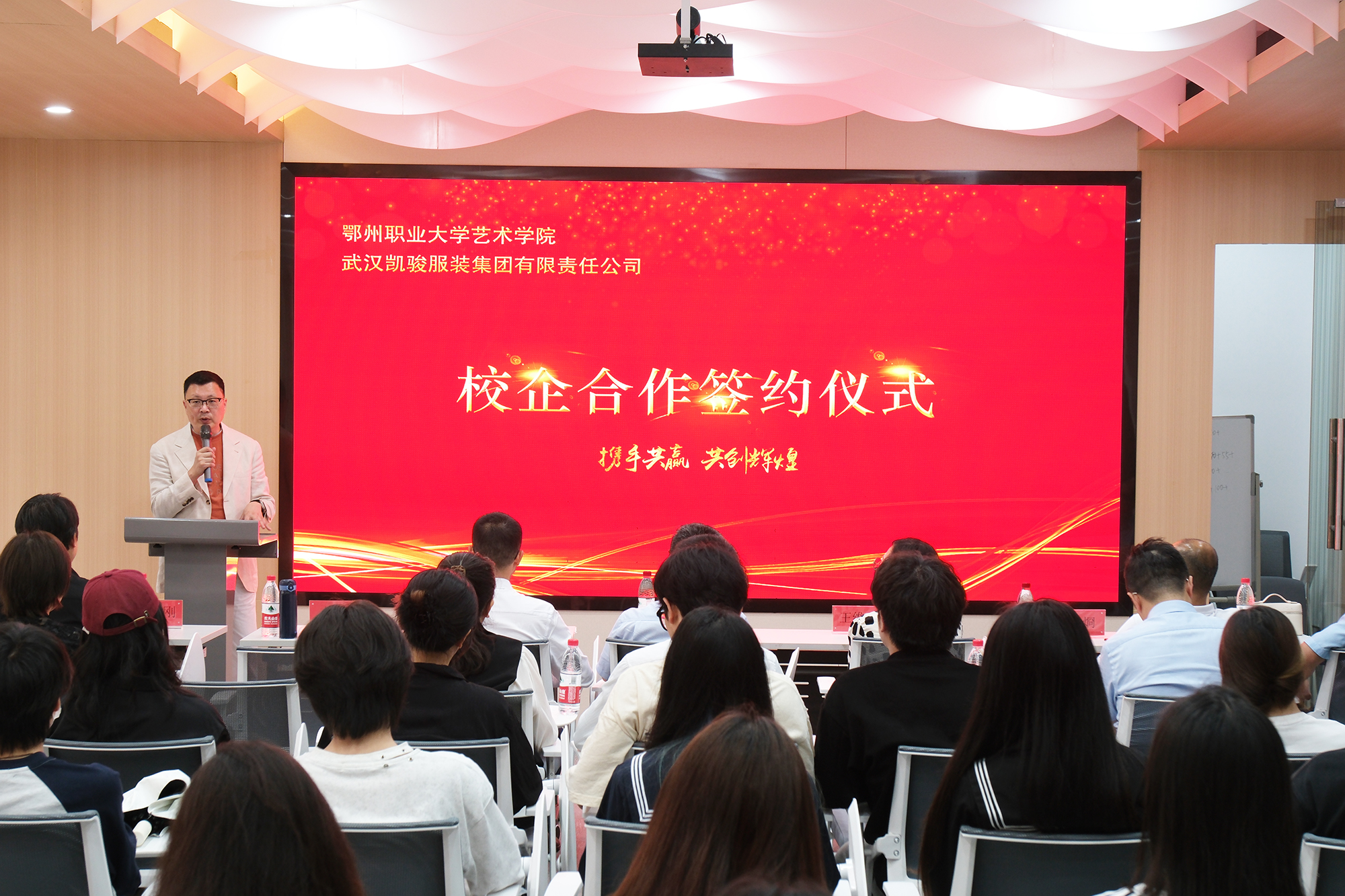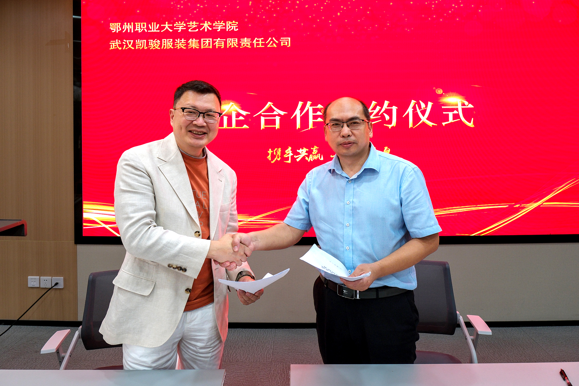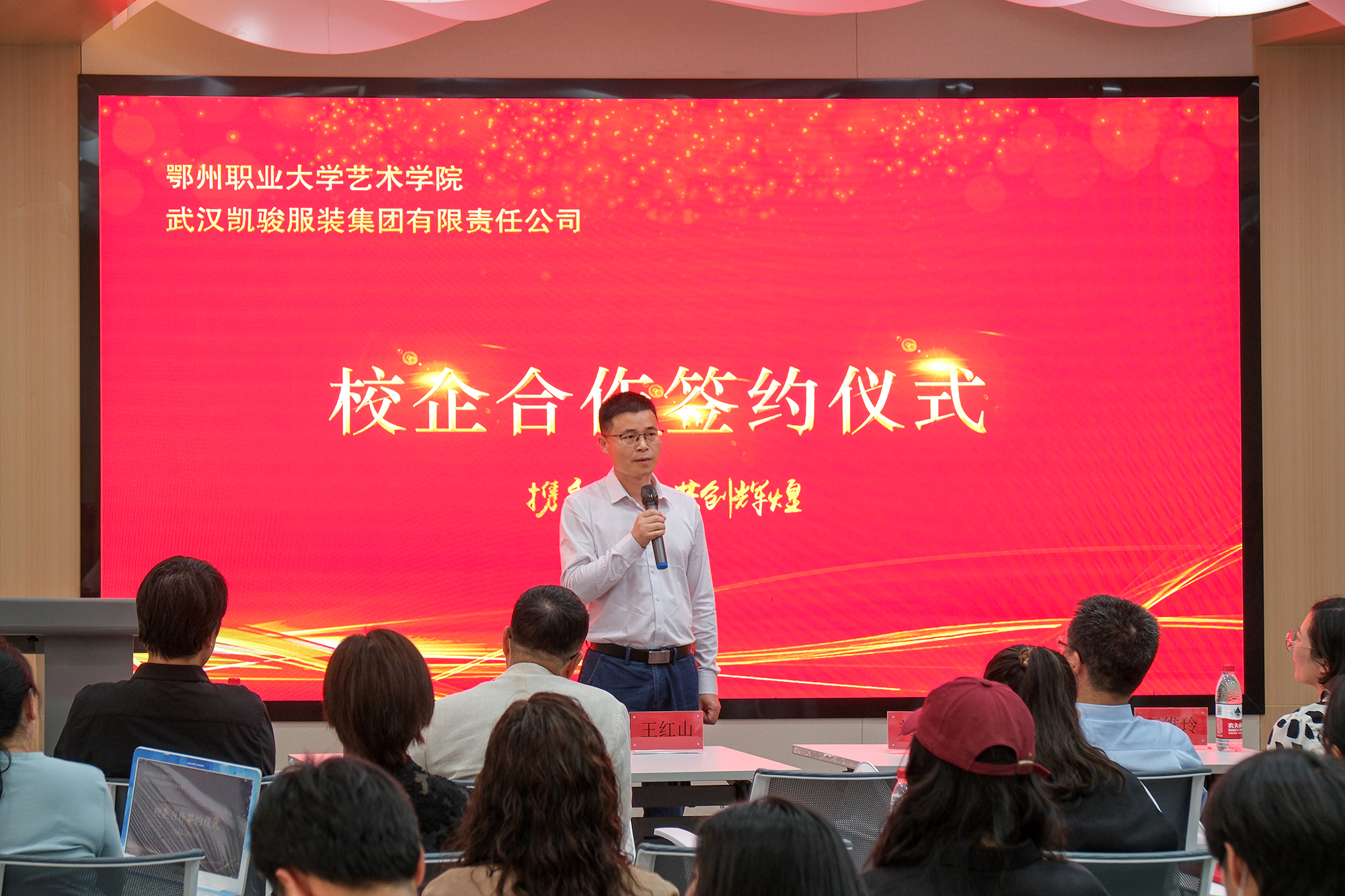 最后,王红山副校长指出:今天协议的签订是落实鄂州职业大学与鄂城区委、区政府的一项具体举措,也是艺术学院与武汉凯骏服装集团的一次深化合作。协议的签订是双方长期务实合作的战略升华,更是深度融合发展的崭新开端,对鄂州职业大学推进省级“双高”建设,对鄂城区进一步增强发展动力活力和综合竞争力均具有重要意义。希望通过校地双方深入全面的合作,切实做到资源共享、优势互补、互利共赢,以贡献求支持,以服务求发展,努力把学校早日建成特色鲜明、优势突出的中国特色“双高”职业院校。