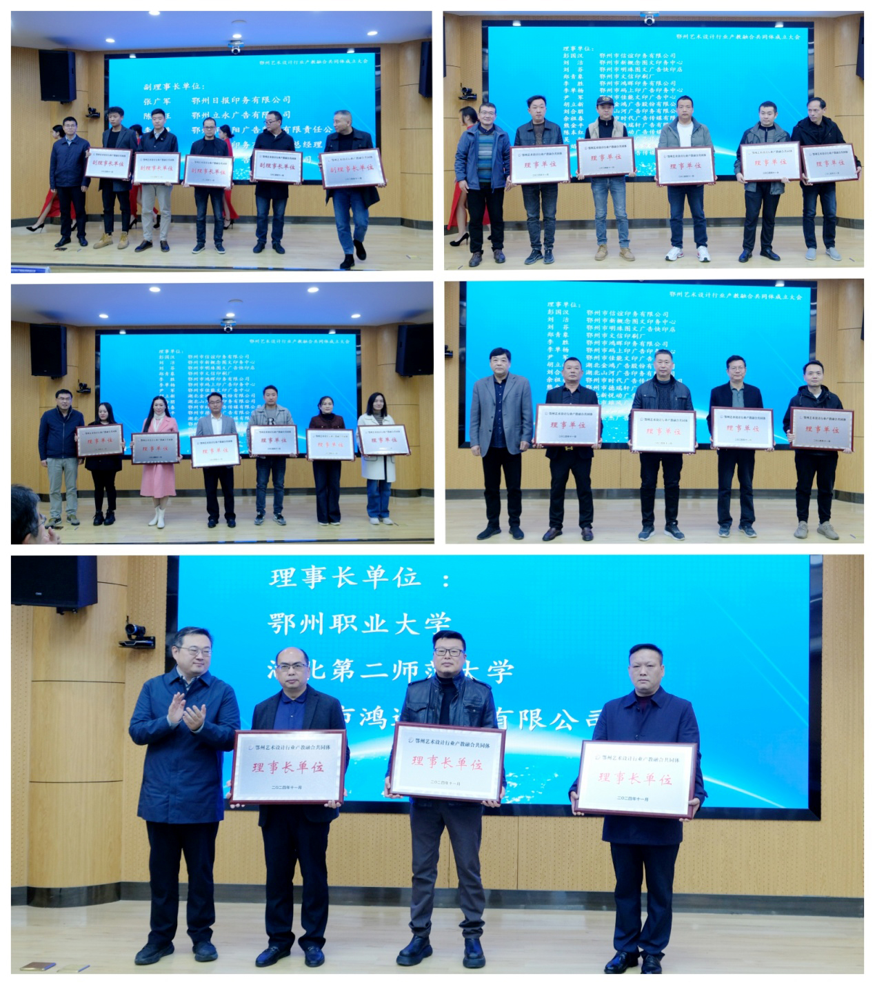 经共同体单位商议决定,鄂州职业大学、湖北第二师范大学、鄂州市鸿达印务有限公司3家牵头单位为首届理事长单位,鄂州日报印务有限公司等5家单位为副理事长单位,鄂州市信谊印务有限公司等 15家单位为理事单位。
