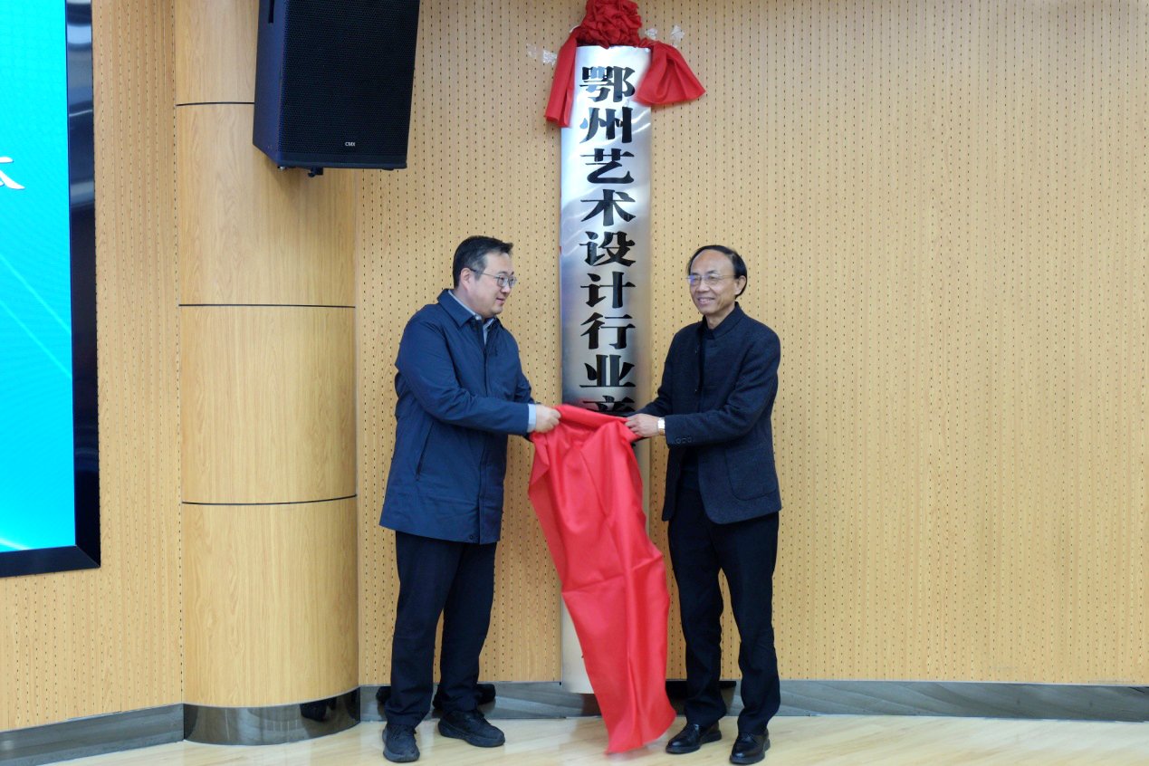 高飞和柳英忠共同为鄂州艺术设计行业产教融合共同体揭牌。
