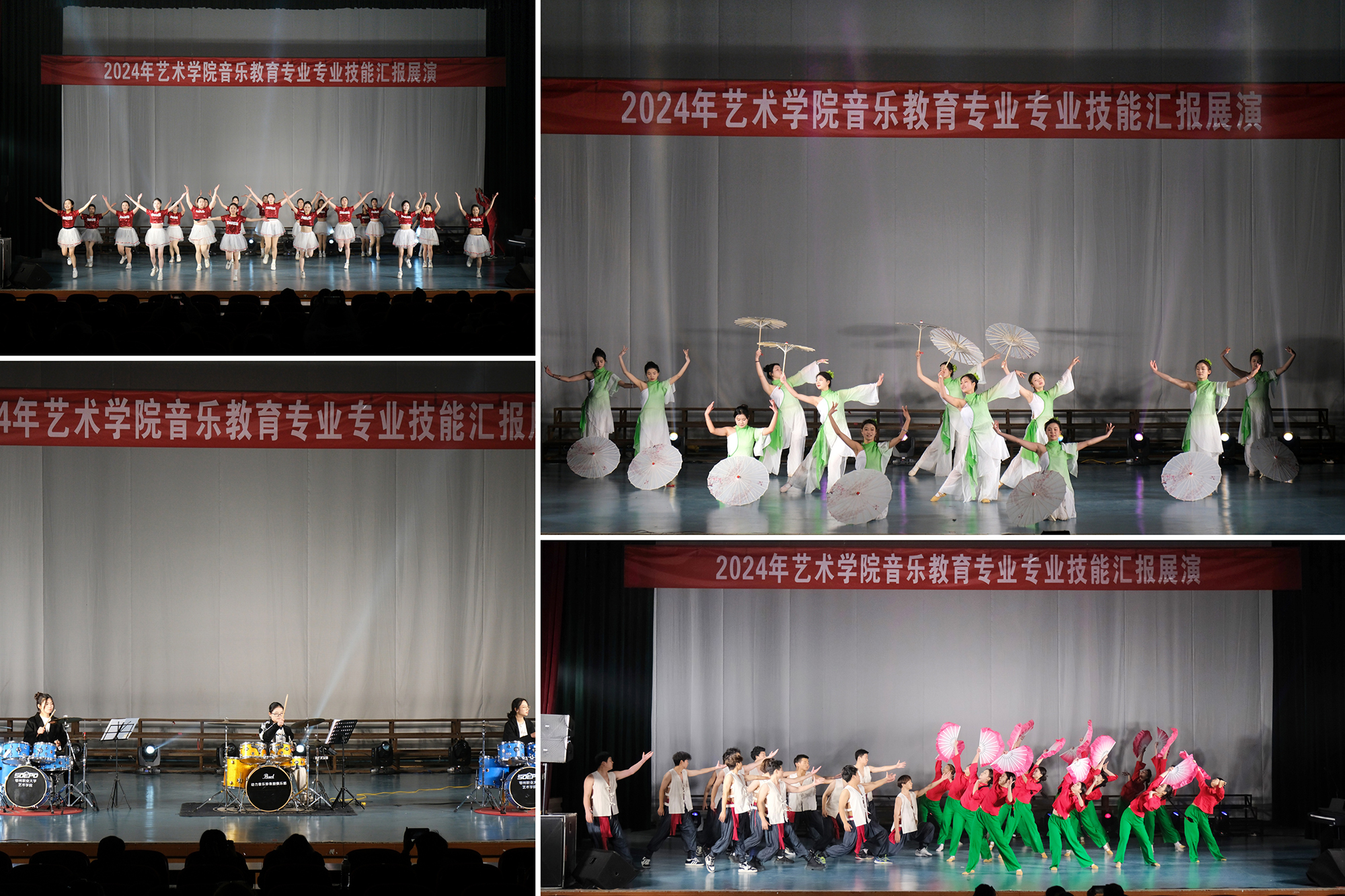 2024年12月27日,由艺术学院音乐教育专业精心筹备的专业技能汇报展演于大学生活动中心上演。此次展演分为四大板块:舞蹈、器乐、声乐及爵士鼓,为现场观众带来了一场展现音乐学习成果、充满青春活力的视听体验。