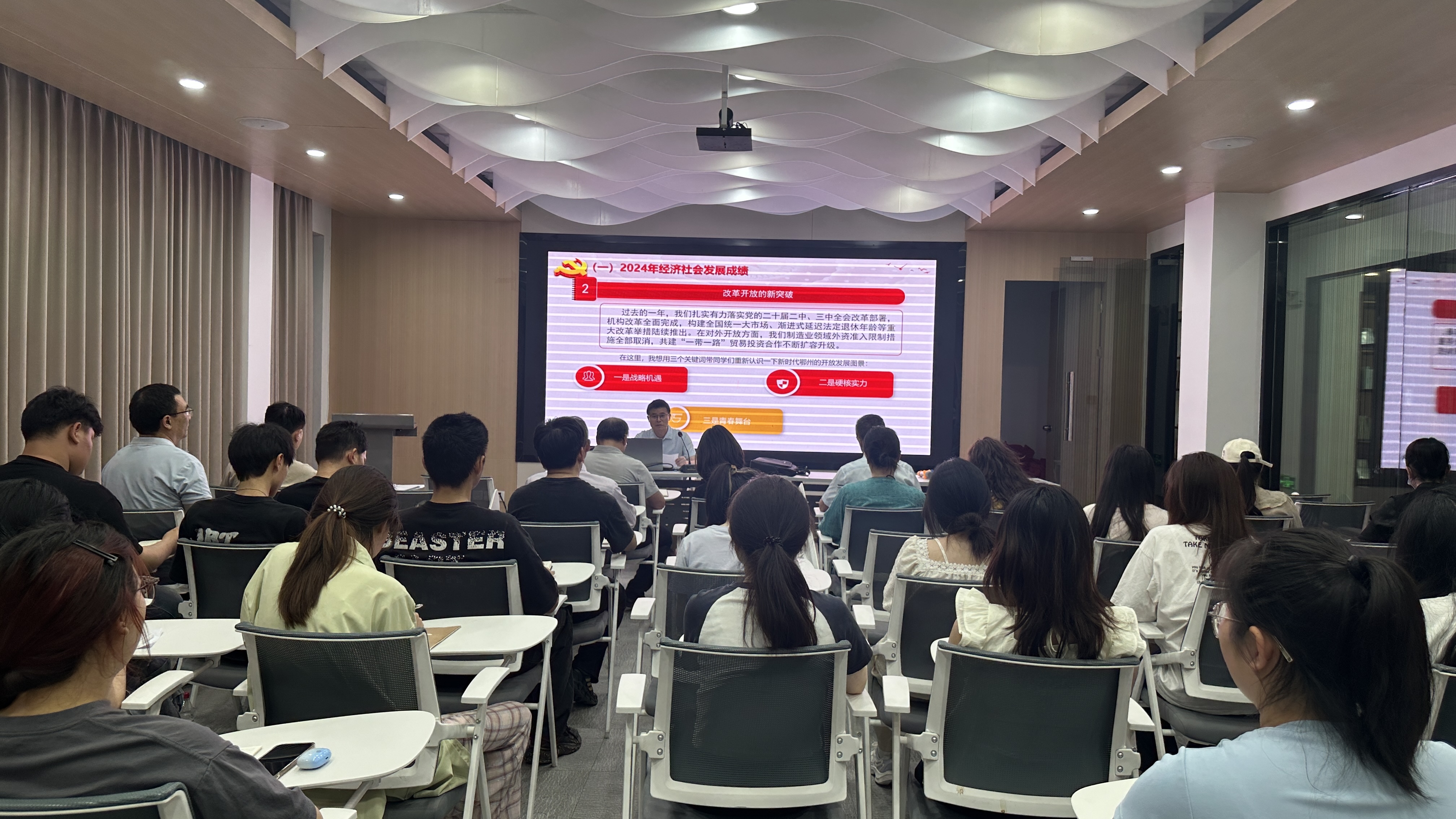 首先,王红山副校长为师生解读《2025年政府工作报告》,详细介绍了2024年我国经济社会发展的成绩、2025年经济社会发展主要预期目标和2025年政府工作任务。随后,王副校长传达了湖北省委省政府“新春第一会”精神,明确了全省加快建成中部地区崛起重要战略支点的任务,阐释了湖北省“两步走”战略目标与重点实施的七大战略。