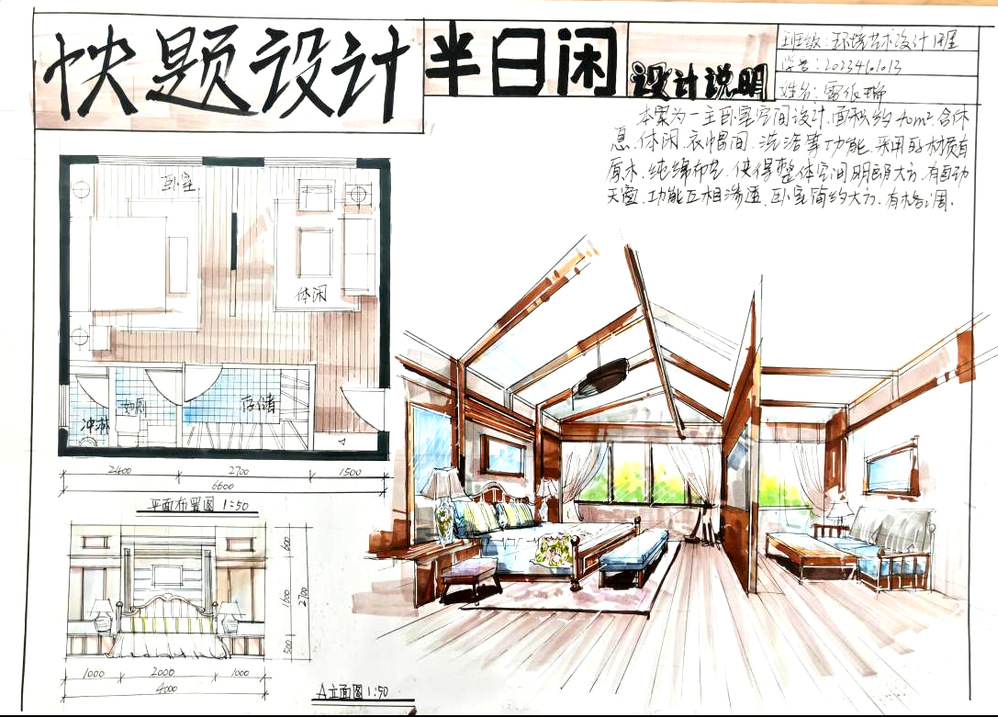 《半日闲卧室空间设计》学生:雷依瑞;指导教师:张蓉