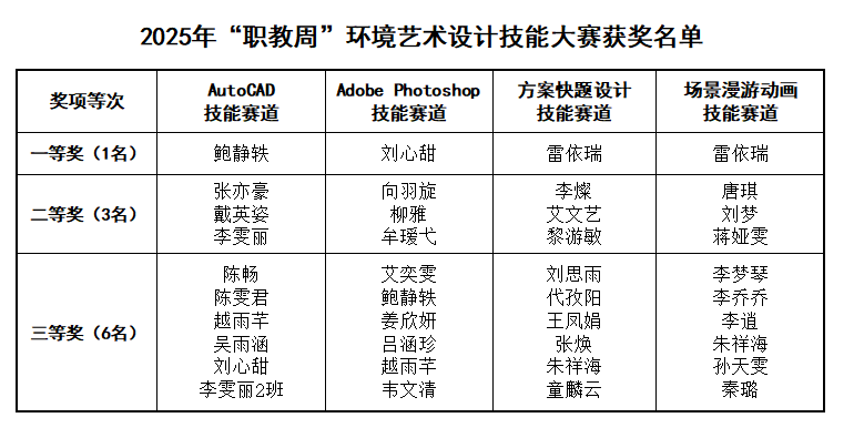 核心赛程与能力要求:AutoCAD技能赛道:考核施工图精准绘制能力;Adobe Photoshop技能赛道:聚焦场景效果图后期处理;方案快题设计赛道:测试创意构思与快速表达能力;场景漫游动画赛道:考察三维空间动态展示技术