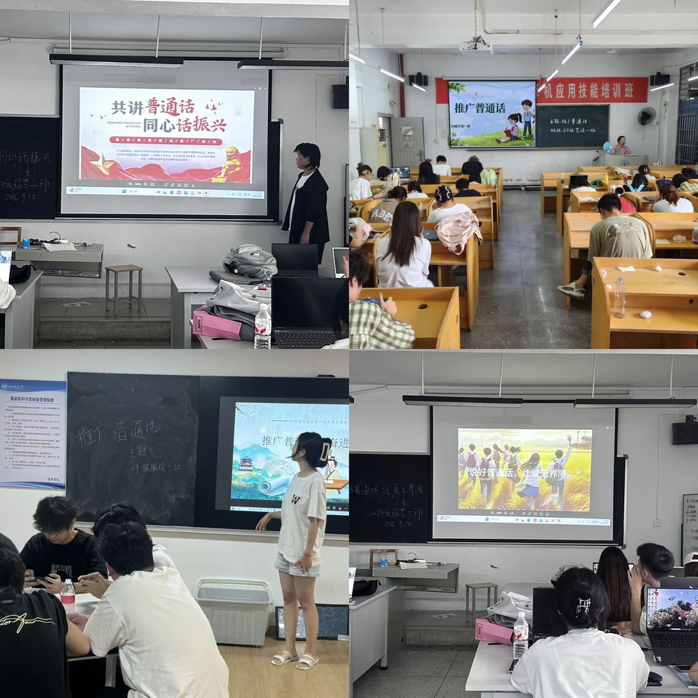 语言是民族的精神血脉,是国家的文化根基。作为中华民族的共同语言,普通话承载着厚重历史,凝聚着时代力量。在全球化与数字化并行的当下,推广普通话已成为国家发展、民族进步的必然要求,而新时代大学生更需主动扛起这一责任与使命。班会上,同学们围绕 “推普” 展开热烈讨论,形成多项共识:普通话是跨地域交流的“桥梁”,能打破方言隔阂,让不同地区的同学快速增进了解、建立友谊,加速集体融合。