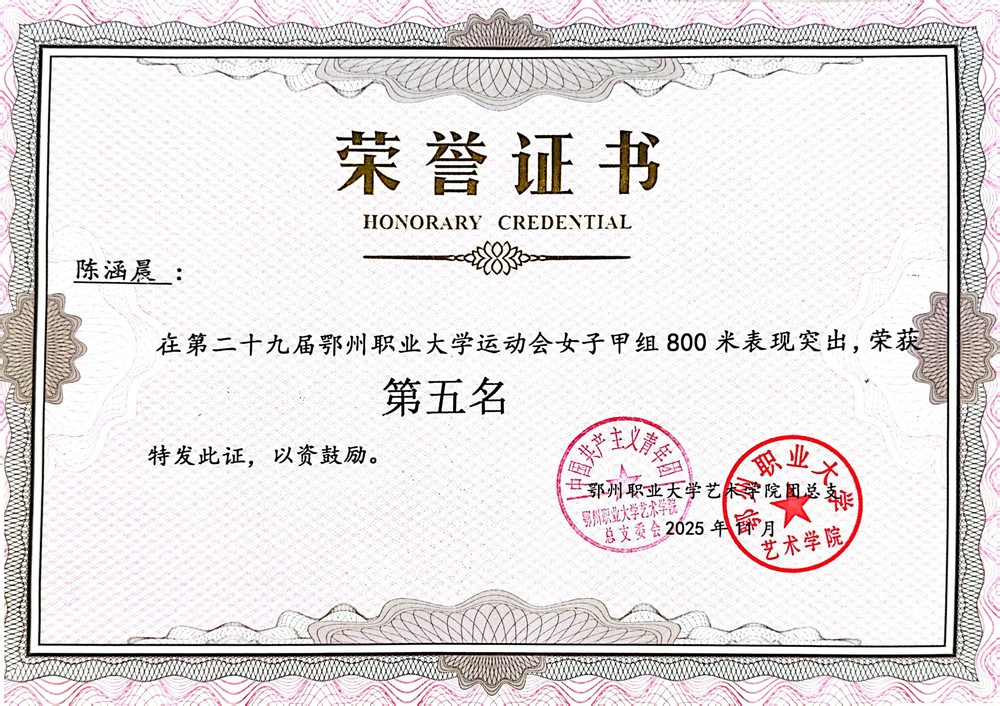 陈涵晨24音乐1在耐力与速度的较量中勇夺女子甲组800米第5