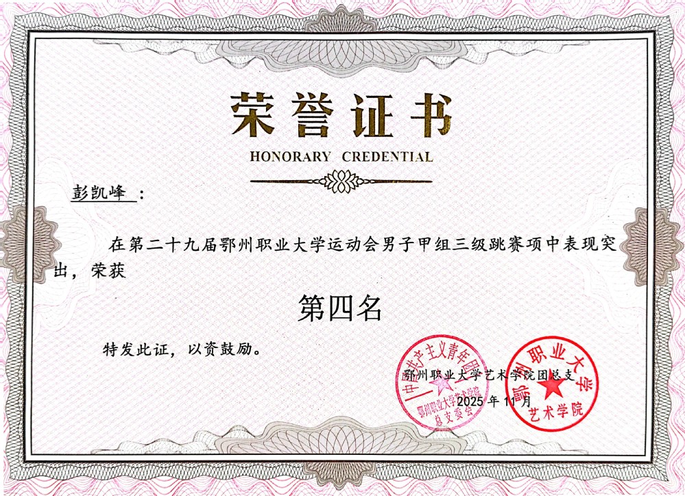 彭凯峰(24级艺术设计1班)凭借出色发挥,荣获男子甲组三级跳远第四名