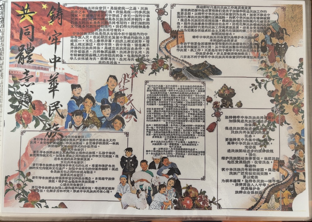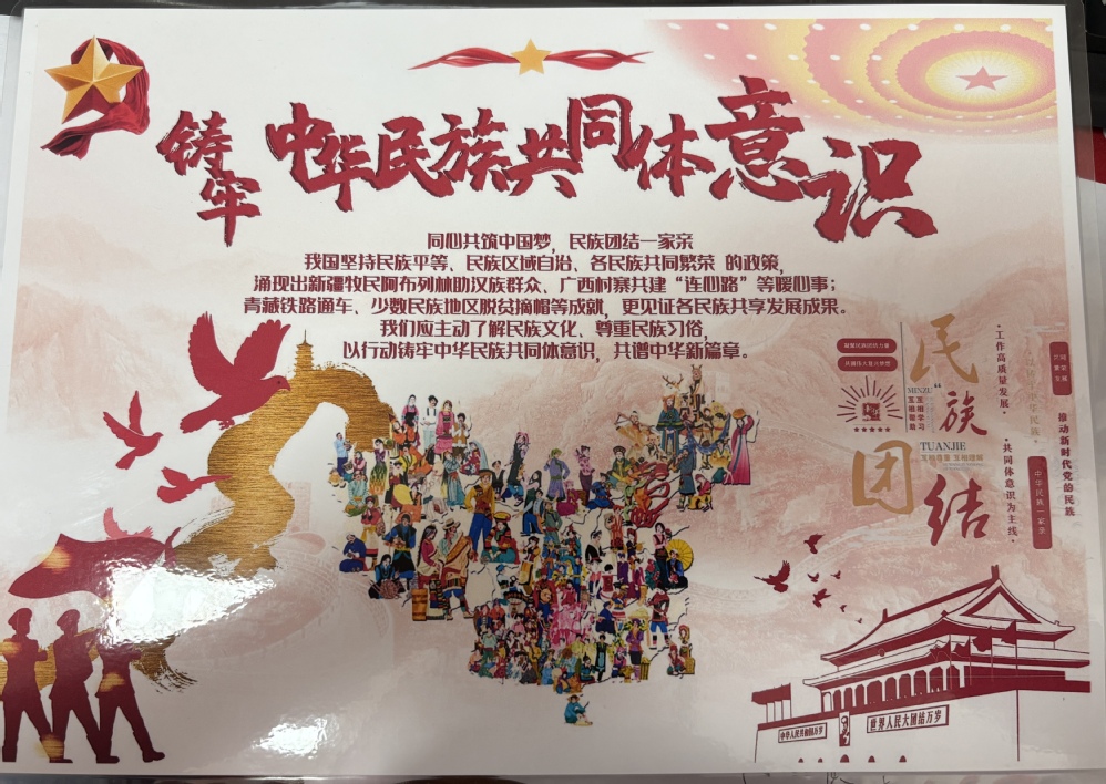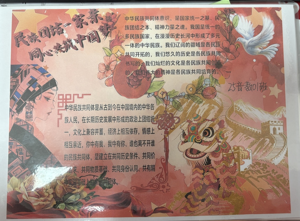 (通讯员 柯希茜 邓涛)为深入学习宣传贯彻党中央关于铸牢中华民族共同体意识的重要决策部署,认真落实教育部及湖北省相关文件精神,根据学校“铸牢中华民族共同体意识校园文化宣传周”统一安排,艺术学院团总支联合东一栋“一站式”学生社区近期精心组织并成功开展了以“铸牢中华民族共同体意识,共绘团结奋进新画卷”为主题的系列教育活动。其中,“铸牢中华民族共同体意识”主题电子版报创作大赛作为系列活动的重要组成部分,吸引了各班级的广泛关注和踊跃参与。