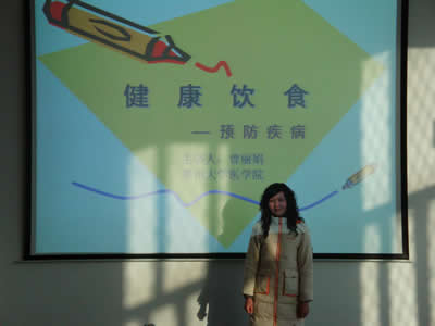 2008年11月19日下午三点,医学院药学教研室曾丽娟老师在本院201阶梯教室向全院师生举行了一场生动的知识讲座,主题为“健康饮食,预防疾病”,旨在宣传如何在生活中通过饮食来预防疾病。参加听讲座的教师有药学教研室的全体老师以及医学院其他教研室的部分老师,学生估计大约两百人,场面宏大。