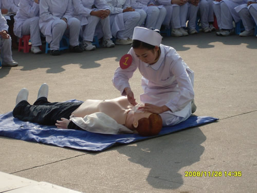 为了贯彻“生命第一,时效为先”的急救理念,培养医学院学生良好的医德医风,增强医学院学生实践动手操作能力,巩固教学效果,同时也为扩大社区中自救和他救队伍,基础护理教研室依据本学期活动安排,在2008年11月1日--26日举行了一次医学院学生心肺复苏操作比赛。