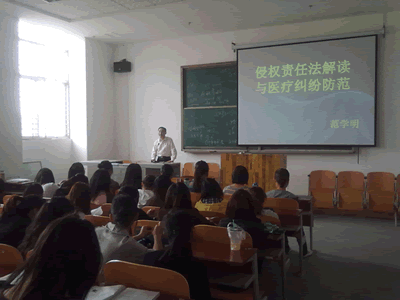 2009级护理专业220名学生聆听了讲座。范学明院长通过大量的案例分析来讲解侵权责任法与医疗纠纷的防范,通俗易懂,使同学们受益匪浅。