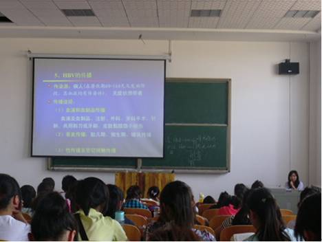 5月18日下午2:30医学院李小玲老师在主教学楼E101教室举行了“健康生活 远离乙肝”疾病预防专题讲座。