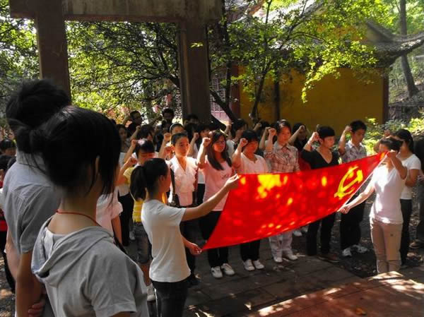 2011年5月29日上午,为纪念辛亥革命100周年暨中国共产党建党90周年,医学院党支组织全体学生党员在西山烈士陵园举行入党宣誓仪式。