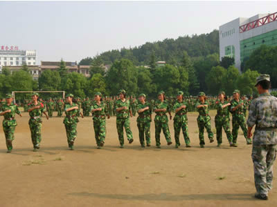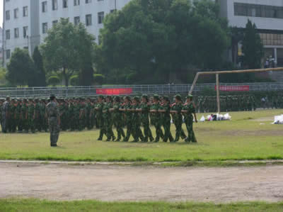 我院参训新生每天早上七点半必须准时到操场集合训练,进行军姿、齐步、正步的队列训练。虽然我院新生女生占绝大多数,但是她们洪亮的口号、整齐的步伐,英姿飒爽的队列充分展示了我院女生巾帼不让须眉的青春风采。军训场上红旗飘扬、口令嘹亮,我们有理由相信通过军训生活的磨练,全体2011级新生的大学生活必将有一个良好开端。