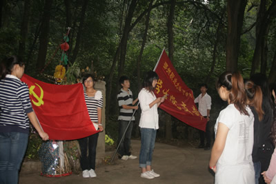 我院学生党支部预备党员及党支部成员近40人在杨波老师的带领下,怀着激动的心情打扫彭楚藩烈士墓缅怀革命先烈,在鲜红的党旗下举行入党宣誓仪式。杨老师勉励所有学生党员背负起“少年中国”的重任,继承和发扬我党的革命传统,为祖国的发展和社会的进步做出贡献。
