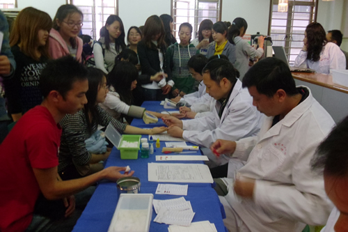 为缓解我市用血紧张,鄂州职业大学医学院百名学生献出热血,温暖冬天。11月18日下午四点整,在医学院学生党支部的带领下60多名学生排着整齐的队伍来到鄂州市中心血站等待献血。采血现场同学们非常兴奋,只见他们一个个整卷起衣袖,放平胳膊,握紧拳头,当排血针扎进胳膊的瞬间,血液顺着导管流入采血袋。学生们的无私奉献精神也感动了现场所有工作人员。当记者采访一名同学问她为什么要参加献血时,她这样说到:作为当代大学生,应该肩负起社会责任,希望通过此活动普及无偿献血的知识,让更多的人了解无偿献血的益处和社会意义,也希望借此呼吁更多大学生参与到无偿献血中来。据悉,这已是医学院今年学生党支部组织的第八次献血,总人数达到500多人。