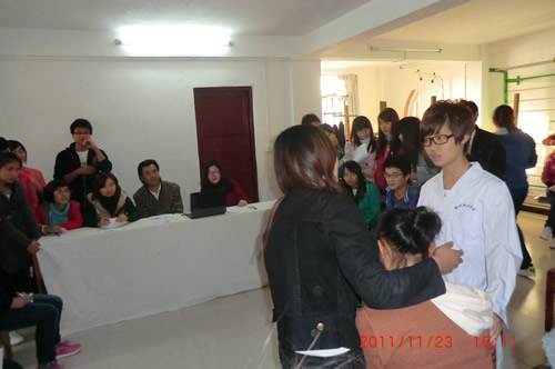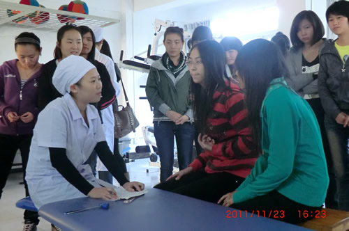 为了提高康复治疗技术专业学生综合能力,康复治疗教研室于2011年11月23日下午举行了常见病的康复评定技能比赛,比赛活动以小组为单位进行角色扮演,比赛内容包括病例PPT展示、问诊、检查和测量、障碍学诊断、康复治疗目标和计划的制定几部分。