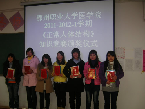 三等奖:柯红芳(2011护11) 谭建平(2011护10) 徐 婷(2011护10) 刘 慧(2011护2)