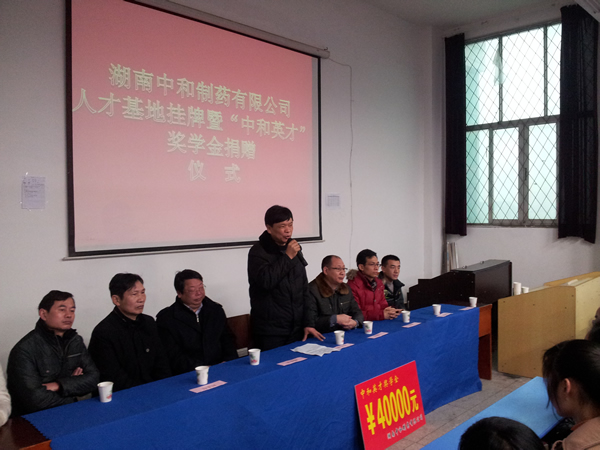 我校举行“湖南中和制药有限公司人才基地”挂牌暨“中和英才”奖学金捐赠仪式