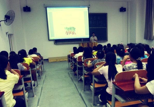 2012年3月28日晚上七点鄂州职业大学医学院举办,潘义教授主讲的合理健康饮食学术讲座在新教学楼E101举行,全校二百余名同学到场聆听了讲座。