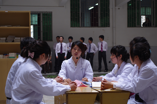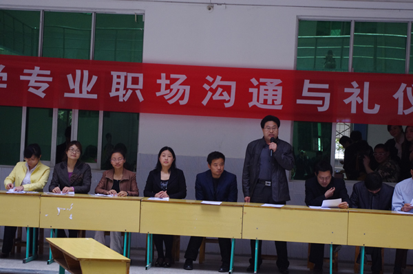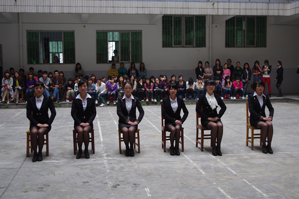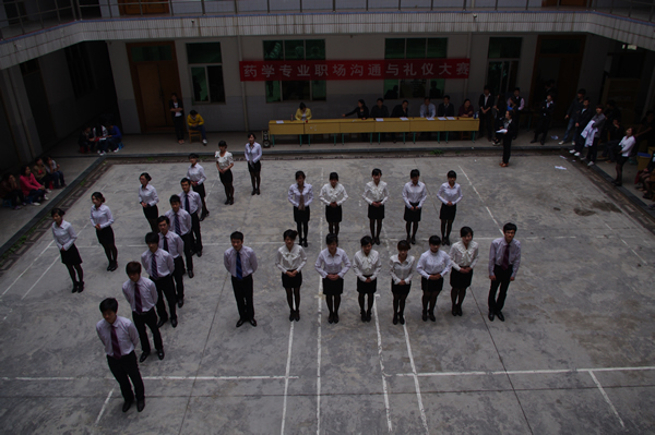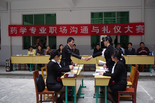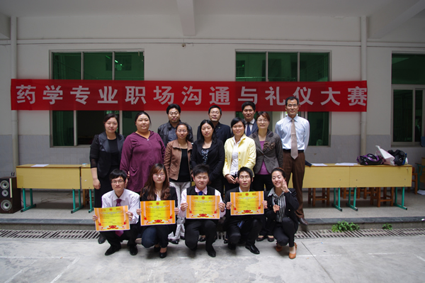为了让2010级学生展示内涵和外表美好形象,在职场中散发出特有的魅力,改善人际关系,赢得竞争优势;促进学生岗位适应能力、社会适应能力;培养学生人际沟通能力,增强团队凝聚力。药学教研室于2012年4月18日下午13:00,在医学院实训大楼一楼户外广场举行了一场职场沟通与礼仪比赛