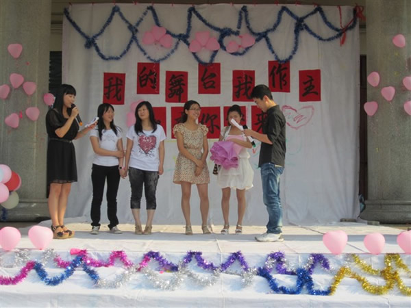 2012年5月30日下午四时各位同学们期待已久的“敢秀你就来”才艺展示大赛在我校东八栋宿舍操场上隆重举行。