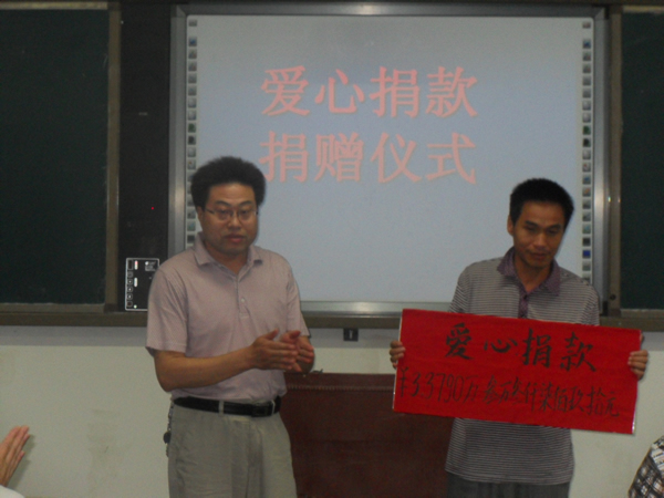 6月26日上午10点,我院于实训楼一楼阶梯教室举行“为吴芳同学爱心捐款捐赠仪式”。医学院院长杨家林、医学院党总支书记汪艳霞、医学院师生代表出席了次活动。在捐赠仪式上,医学院院长杨家林代表全体师生向吴芳同学的父亲转交了全部爱心捐款共3.3790元。吴芳同学的父亲对我院全体师生的慷慨解囊和无私帮助表示衷心的感谢。院党总支书记汪艳霞向吴爸爸转达了全院师生的亲切关怀和慰问,鼓励她勇敢面对困难,战胜疾病,早日康复。让我们虔诚地祈祷吴芳同学能战胜病魔,重返校园。