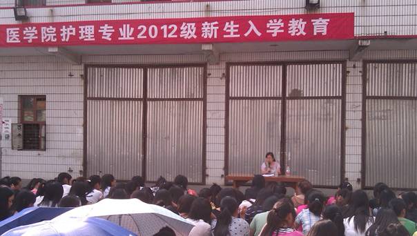 9月24号下午,在学院精心的筹备和周密的布置下,医学院2012级900多名护理专业新生入学教育在实训楼旁小操场举行。