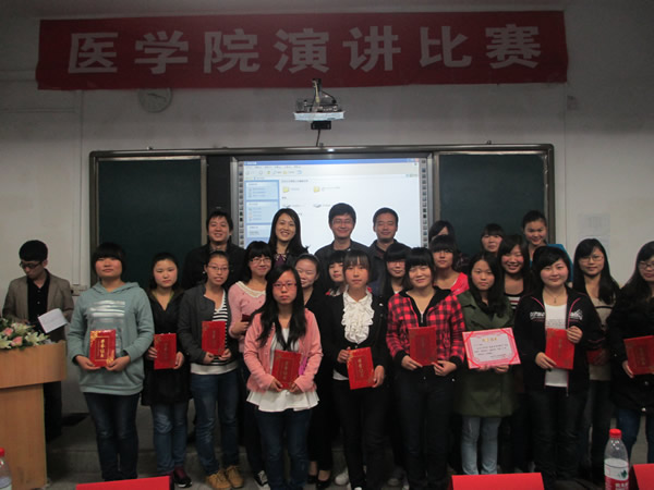 2012年10月24日晚七点医学院守护天使协会组织“我的未来,我做主”演讲比赛在医学院阶梯教室圆满落幕,学院领导出席比赛并担任活动评委。我院11级20名参赛选手通过热情洋溢的精彩演讲抒发自己对未来的规划与畅想,充分展现了我院学生意气风发的精神面貌。经过激励的角逐,涉外2班袁美婷荣获本次演讲比赛一等奖,涉外2班杨朔、护理(9)杜荣荣获二等奖, 助产5班钟欧阳、护理(4)班王东旭、护理(12)班邹琼荣获三等奖。