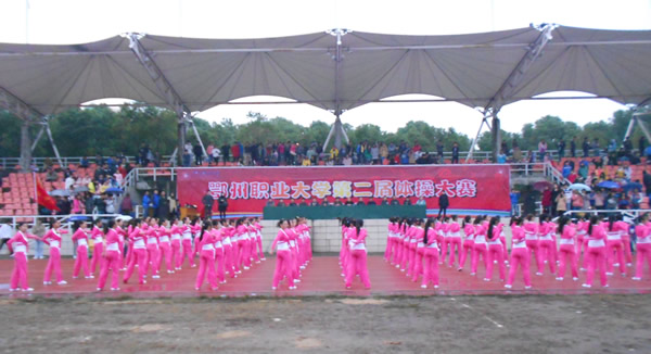 为增强大学生身体素质,促进德智体全面发展,2012年11月9日下午4时我院组织2012级学生积极参加由校团委举行的“鄂州职业大学第二届体操大赛”。