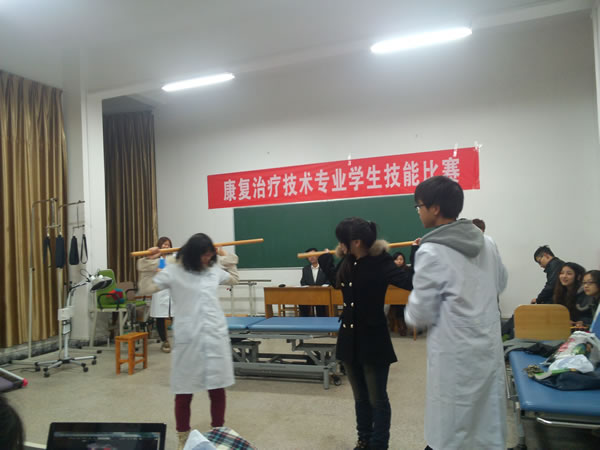 为了培养具有良好专业素养和技术能力的高端型康复治疗技能人才,体现“三干型”人才的培养特色,康复治疗教研室于11月21日下午3:00举办了大二学生的康复技能比赛。此次比赛内容对应《康复评定技术》、《临床医学概要》、《运动治疗技术》、《传统康复治疗技术》等课程,意在通过此次活动提高学生的专业能力,实现人才培养中级目标——培养会干的专业人。