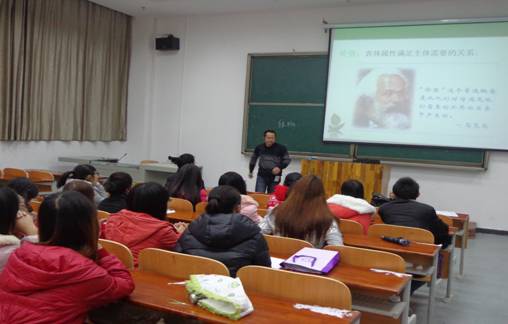 为了深化学生干部内涵,提高学生干部全面素质,11月27日晚,我院2012~2013年度学生干部培训班第五堂讲座,由2012级辅导员林峰老师在E102多功能教室为百名学子做了“人生的价值与社会责任”的人生哲理讲座。