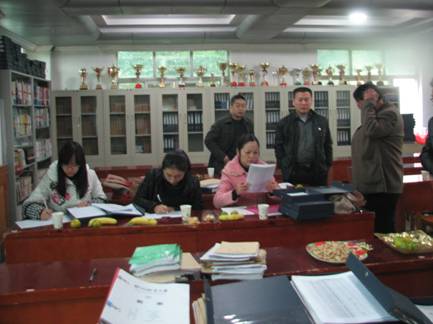 在各教研室和教学院部自查的基础上,11月28日,学校教务处杨殿生处长率领检查组成员,检查我院教学文件、教风学风、教材建设及教学运行等情况。徐小军副院长对我院本学期的工作及成绩作简单汇报,杨家林院长作补充说明。经过两个小时认真仔细检查资料,最后,检查组对我院的教学管理及运行工作表示肯定,从中也对我院不足的地方现场反馈。
