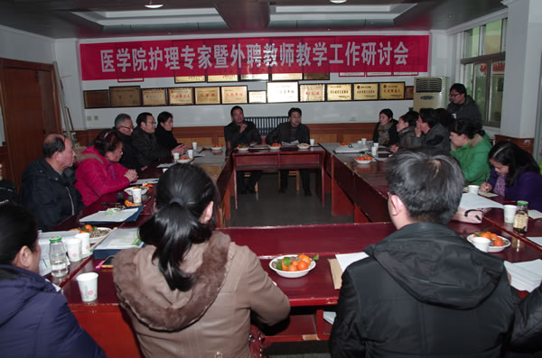 2013年1月16日下午,我院邀请护理专家与外聘教师教学工作研讨会。会议由医学院院长杨家林主持,出席会议有鄂钢医院护理部主任童艳琼以及来自鄂州市中心医院、鄂州市二医院、鄂州市妇幼保健院、鄂州市疾控中心的专家杜芳、范志红、沈利红、邓宗华、万九菊等15人,我校教学督导陈炜教授,学院各教研室主任。