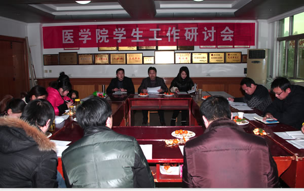 杨家林院长对我院2012年学生工作所取得的成绩给予了充分肯定,并要求辅导员在2013年学生工作中继续加强自身素质的修养,拓宽知识面,用自己的一言一行去影响学生,注重学生的心理辅导,创建班级特色,并提出了“学在医学院,成才在医学院”的管理目标。每个辅导员对自身工作认真总结,精心准备,并进行了主题发言,如:林峰同志的《新生的第一次班会课》;洪双同志的《班级管理》;肖燕同志的《如何提高学生的技能培养》。