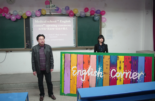 为了适应专业发展的需求,更好地提高涉外护理专业学生的英语口语水平,我院涉外护理教研室于2013年3月15日晚,在医学院实训楼阶梯一教室正式启动 “英语角”活动。