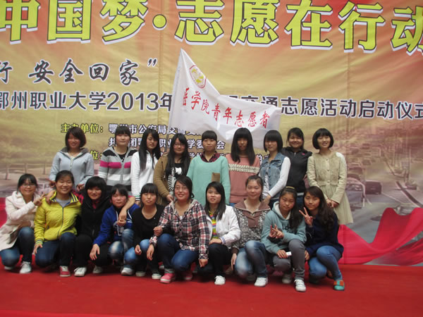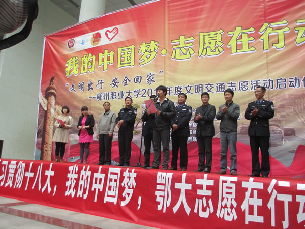 2013年3月28日下午4时,我院青年志愿者协会100多名志愿者在我校行知楼参加“鄂州市文明交通志愿”启动仪式。