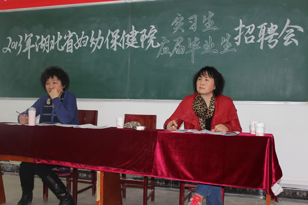 2013年4月9日,湖北省妇幼保健院护理部熊主任、人力资源部郑主任来我院招聘2013年实习生和2013应届毕业生。招聘现场设在我院弘德楼阶梯(二)教室,我院2010级护理(含助产)专业的47名学生参加了应届毕业生的招聘,2011级护理(含助产)专业的63名学生参加了实习生招聘。经过面试、理论考试与综合考核,录取了24名实习生,18名应届毕业生。