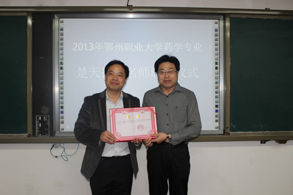2013年4月16日下午,在医学院实训楼阶梯一教室举行了聘任仪式。聘任仪式上,医学院院长杨家林致辞,对杨青先生担任本专业楚天技能名师表示热烈欢迎,杨青先生也就受聘药学专业楚天技能名师作了发言。
