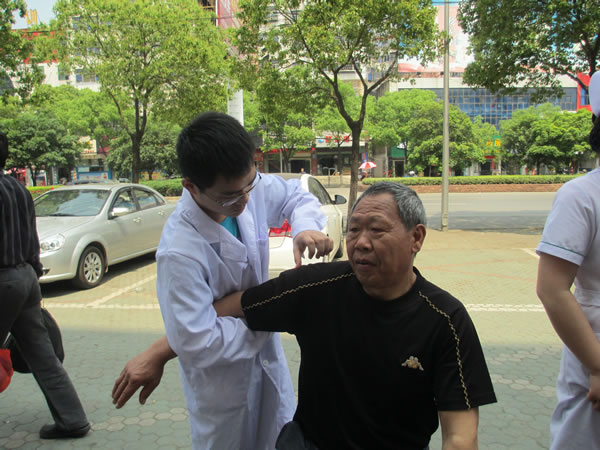 活动期间同学们为社区居民免费进行血压、血糖检测,为往来居民开展健康咨询,提供康复保健按摩。同学们认真专业,耐心细致的服务赢得社区群众的广泛好评。