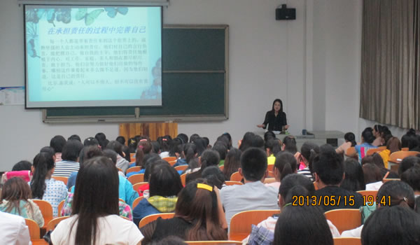 为加强我院学生心理健康教育,帮助学生树立正确的心理健康意识,学习心理健康知识,获得心理疏导和自我维护的方式。5月15日晚7:00, 我院党总支书记汪艳霞在求真楼E101,举行“善于营造积极心态”为主题的心理健康讲座。
