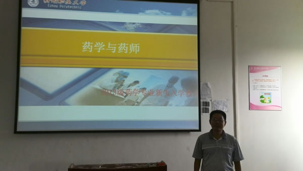 2013年9月22号下午2点半,由医学院药学教研室万进军老师主讲的药学专业新生入学讲座在弘德楼阶梯教室202进行。参加本次入学教育的有药学教研室部分老师及2013级药学专业全部学生。