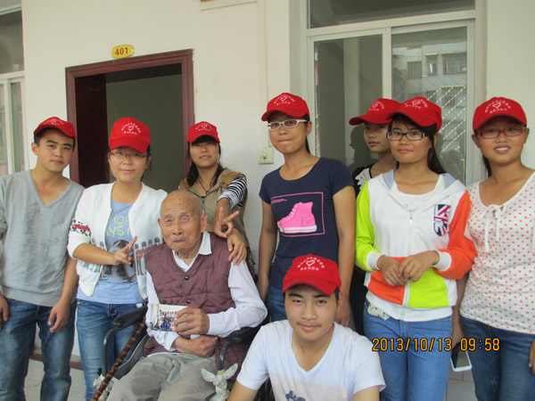 2013年10月13日上午8时,我院青年志愿者协会组织14名新生志愿者前往夕阳红老人院陪老人欢度第一个我国法定的“老年节”。
