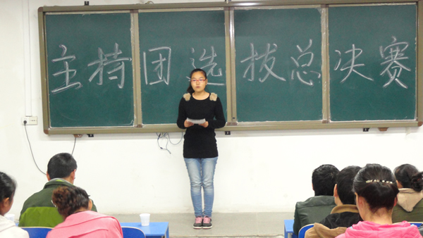 为充分锻炼学生的语言表达能力,为文体活动挖掘、培养新人。2013年11月12日晚上七点,医学院团总支在弘德楼阶梯一教室组织主持人选拔大赛。校创建办李璐主任、校舞台总监陈凌老师及院团总支书记盛冠麟老师出席本次活动并任评委。