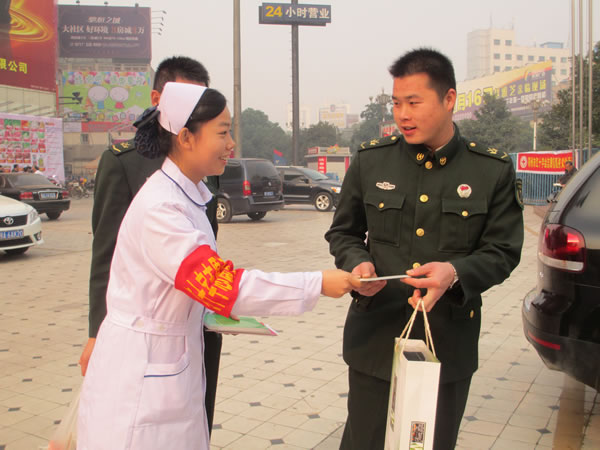 在国际第28个志愿者日即将到来之际,我院守护天使协会联合市红十字医院于2013年12月4日在万联购物广场免费开展义诊的活动。