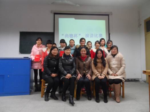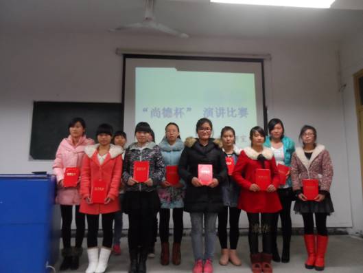 2013年12月10日由助产教研室举办的“尚德杯”演讲比赛在弘德楼501举行。本次演讲比赛从开展“守护天使”活动主题营造校园和谐文化,同时从锻炼大学生上台讲话的勇气,提高个人演讲水平,初步掌握演讲基本技巧为主要目的,一方面,通过演讲的交流,让广大同学热爱助产专业,保障学校教育工作顺利开展,促进学生健康成长;另一方面,丰富了在校学生的课余文化生活,为同学们施展才华搭建了一个良好的平台。